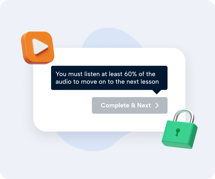 Ensure students listen to your audio instead of skipping ahead. Prevent students from starting the next lesson without completing a required percentage of your audio. Teachers can set a custom progress requirement so students listen a specific portion of the audio before moving on. Keep students focused and boost learning retention.