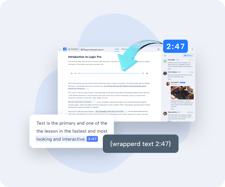 Improve audio lessons with timecodes, just like YouTube! Teachers can highlight key moments in the audio, give extra context, and guide students on when to pay closer attention. Improve the learning experience so students easily navigate the audio and focus on important sections.