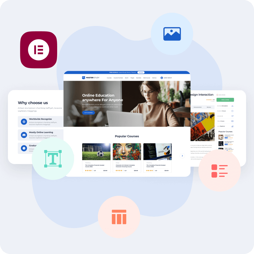 That’s why MasterStudy LMS is bundled with a free Starter Theme, which looks modern, integrates LMS features, and features all the pages you need.