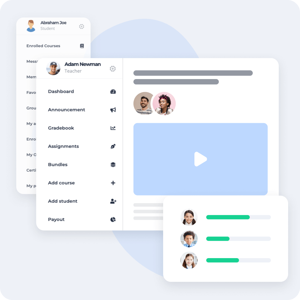 Set assignments, quizzes, tests and follow their gradebook. Once they complete their course, reward them with a certificate.