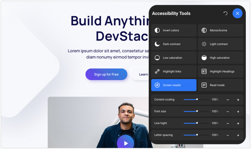 DJ-Accessibility allows users to improve website usability by providing them with direct control over how they want to navigate a website. This plugin includes various tools for accessibility to enable users to customize how they want to navigate a website through contrast settings, color reversal, saturation adjustment, font resizing, scaling content, and a readability mode.