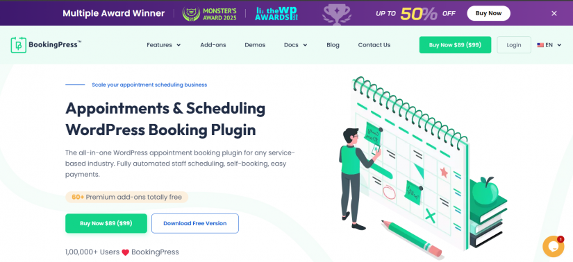 BookingPress is a business-oriented appointment booking plugin for WordPress. It boasts an impressive features set and friendly user interface that helps you make a complete appointment system in your WordPress site.