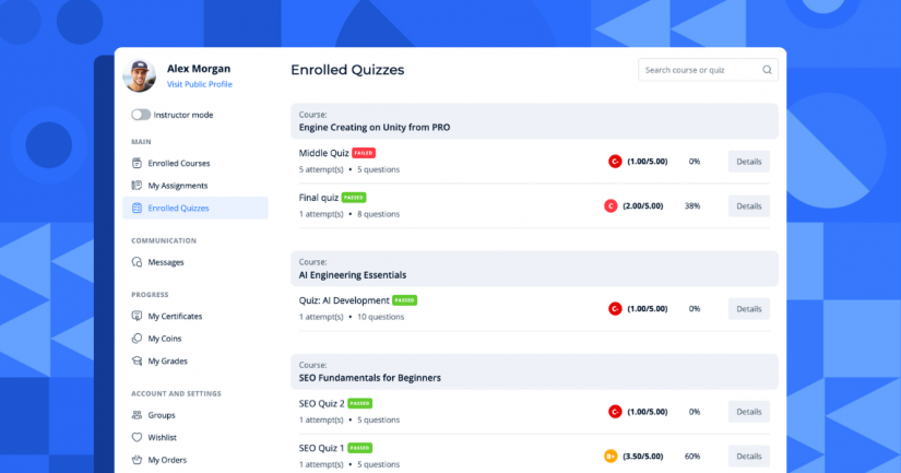 A single place where learners can see their courses, progress, achievements, and activity – all in one structured interface.