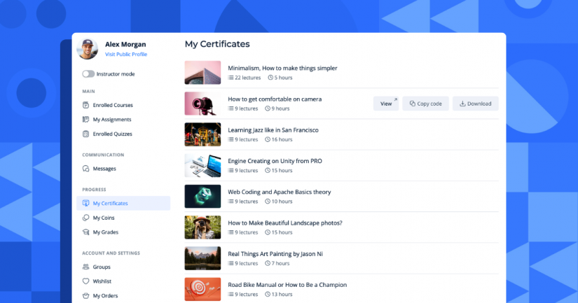 The redesigned Certificates page gives students a clean overview of the certificates they’ve earned across different courses.