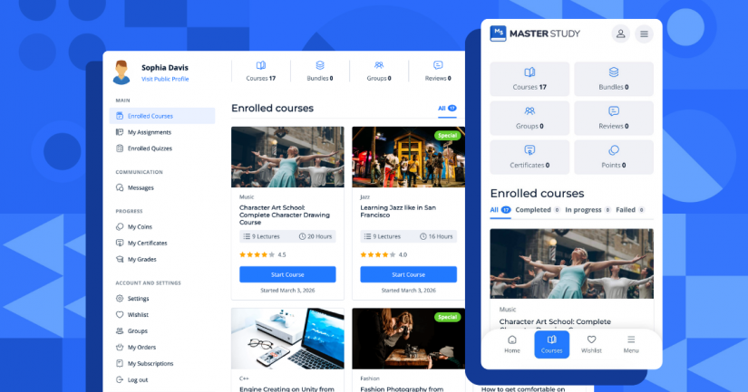 So in the latest update of MasterStudy LMS, we redesigned the entire profile experience and turned it into a true learning hub for students.