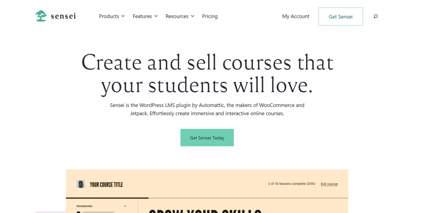 Sensei LMS is a WordPress plugin that compliments your website with a full learning management system. One of the distinguishing features of Sensei LMS is that it allows you to be in control of your content, pricing, reports, etc. while you’re integrating with WooCommerce. Besides that, Sensei has other features that elevate your e-learning experience.