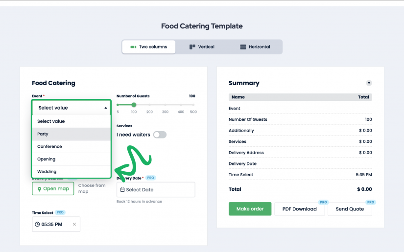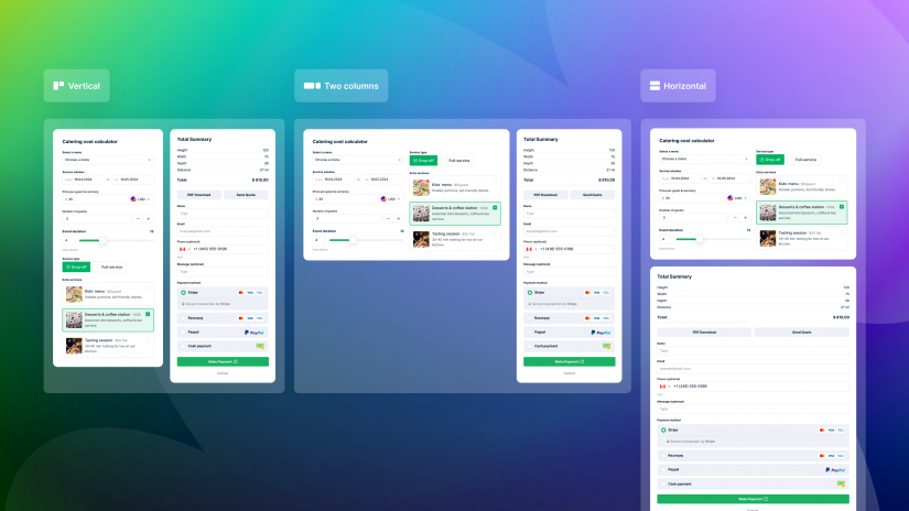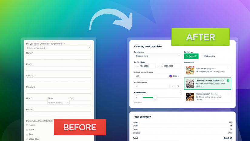 Eventually a cost calculator is a much better option for a food catering business. Unlike old-fashioned contact forms it gives instant, interactive price estimates right on your site. This makes your service feel more modern and easier in use, helping you impress customers and get more bookings faster.
